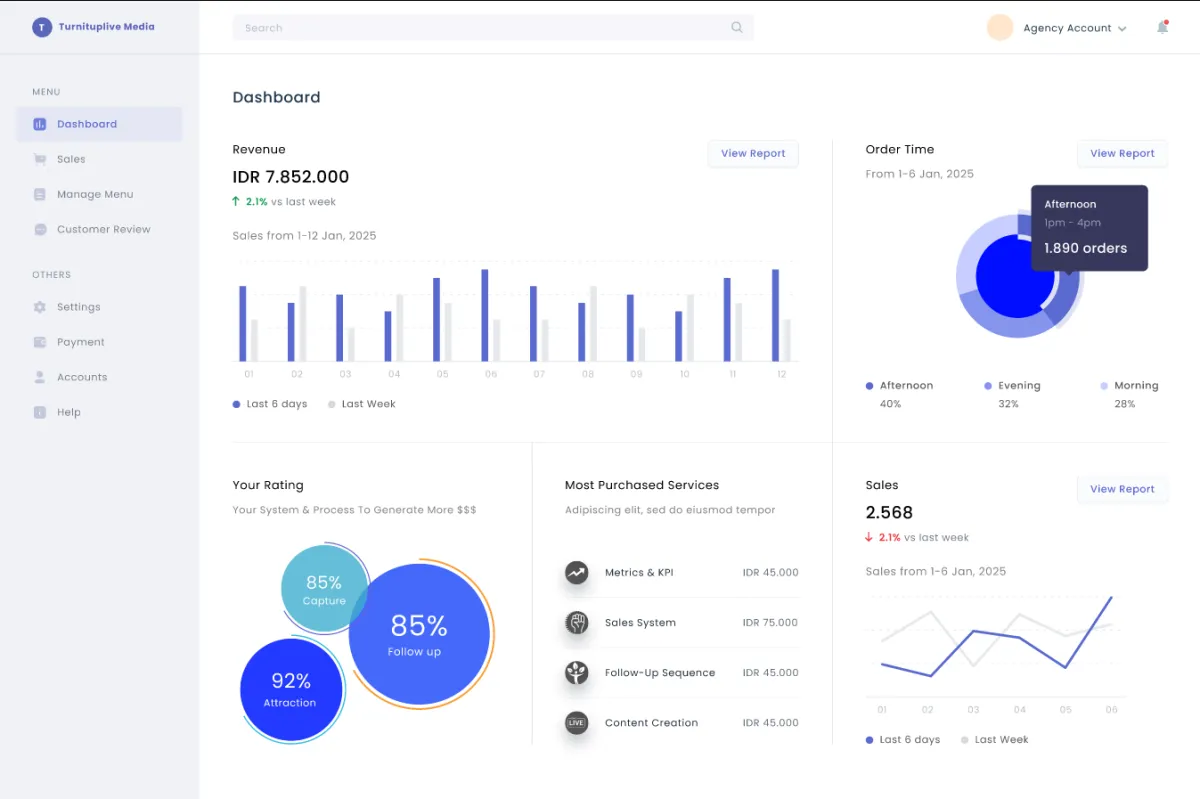 Our done-for-you lead management systems used in our own business handle everything for you: high-converting funnels, automated email/SMS sequences, CRM tracking, KPI dashboards, and DM automations.